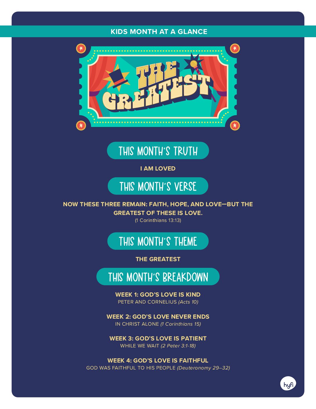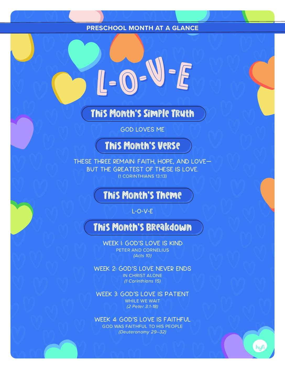 Hyfi at Home is flexible, faithful, and fun for the whole family. Build connection and belonging by watching, talking, listening, learning, and having fun—all centered around the Bible. Each week, you will find new content that connects with what is being taught in your church’s kids ministry.
